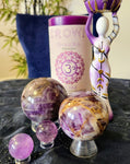 Like normal Amethyst, Chevron Amethyst is associated with the Third Eye and Crown Chakras. However, due to the white quartz inclusions, Chevron Amethyst is known to be much stronger than normal Amethyst at linking the crown and third eye chakras. This crystal may be beneficial for those that want to connect with their "higher self" and lean into their authenticity.