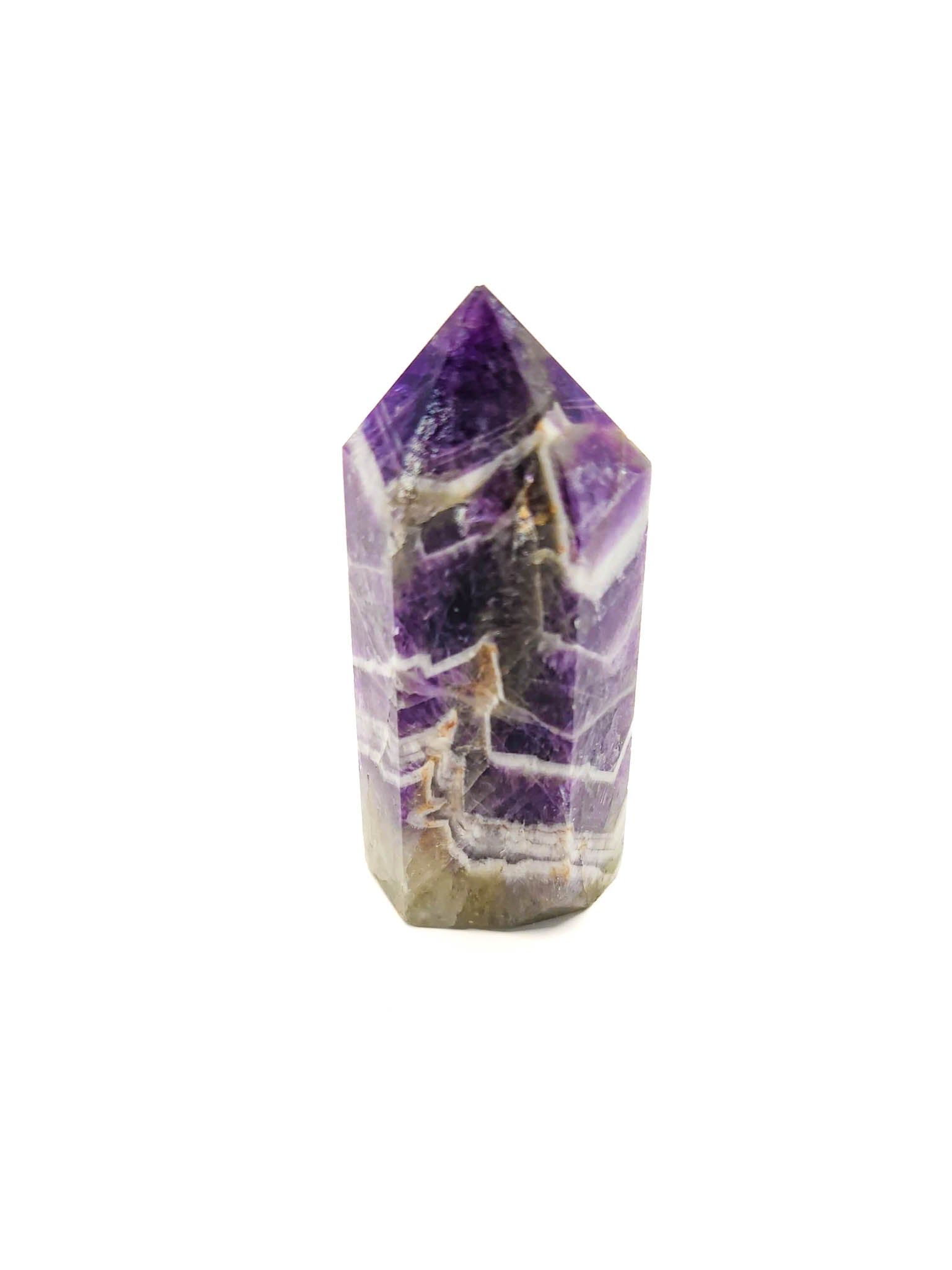 A Chevron Amethyst Obelisk Tower will also help open up and align the Third Eye, Crown, and Etheric Chakras, as well as deepen your meditative practice and hasten the development of your intuitive and psychic abilities.