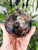 Garnet Speres is closely associated with creativity and love, this stunning stone is a must-have for any crystal lover. Deep red, yellow, and white inclusions fill this rich black crystal making it mysterious yet beautiful. Most garnet forms when a sedimentary rock with high aluminum content, such as shale, is metamorphosed. The high heat and pressure break the chemical bonds in the rocks and cause minerals to recrystallize.