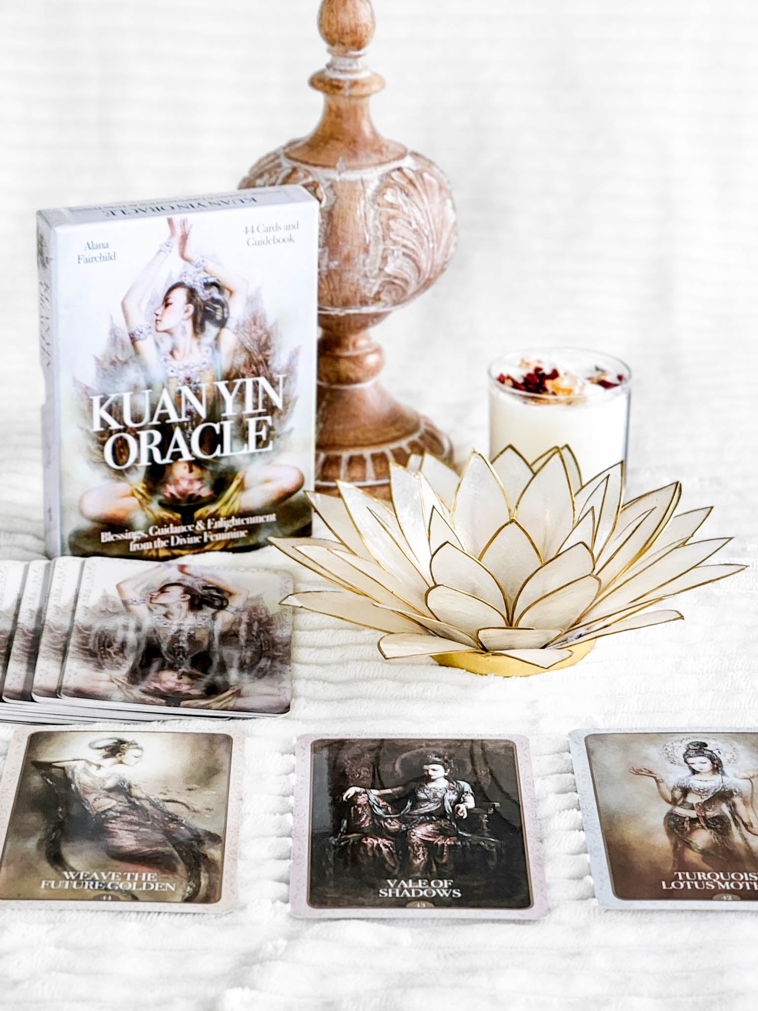 The Kuan Yin Oracle deck is a beautiful set of oracle cards to help guide you as you look for more peace and balance in your life. Her loving presence is felt within each of the cards as she teaches you how to have compassion for yourself and others.