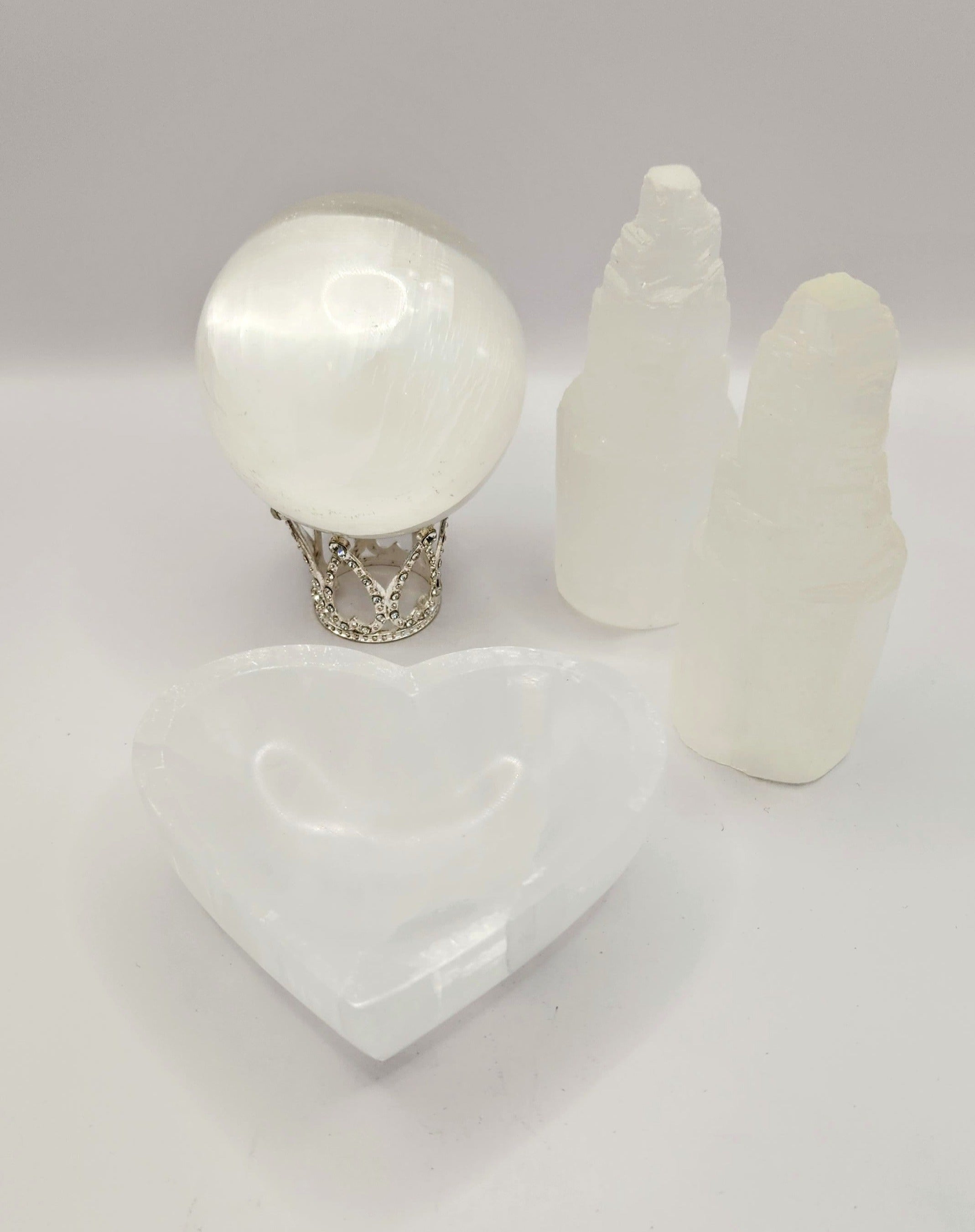 Selenite is known to be a conductor of energy and a cleansing crystal. It is associated with the Third Eye and Crown Chakra, so it may be beneficial for people who feel that they need spiritual alignment and enlightenment. As a cleansing crystal, Selenite may also be useful in clearing out negative energy within a person or a space.